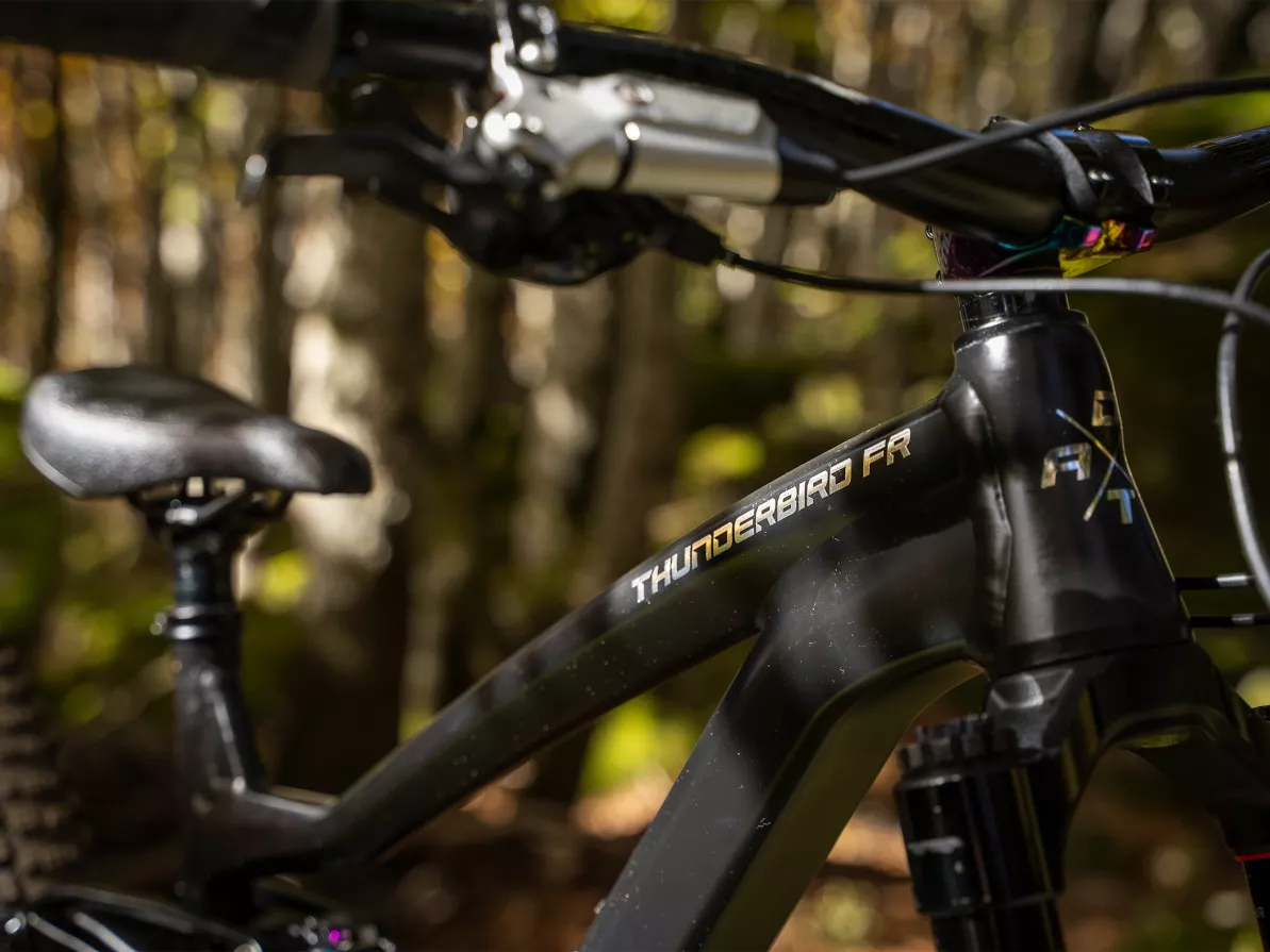With either a 200mm dual crown or a 180mm single crown fork, it's designed for bikepark laps with friends who chose double black diamonds for a warm-up run. Thunderbird FR pedals just right to keep the sweat off during beer runs while its suspension stays responsive enough to prevent cold ones from ruffling.