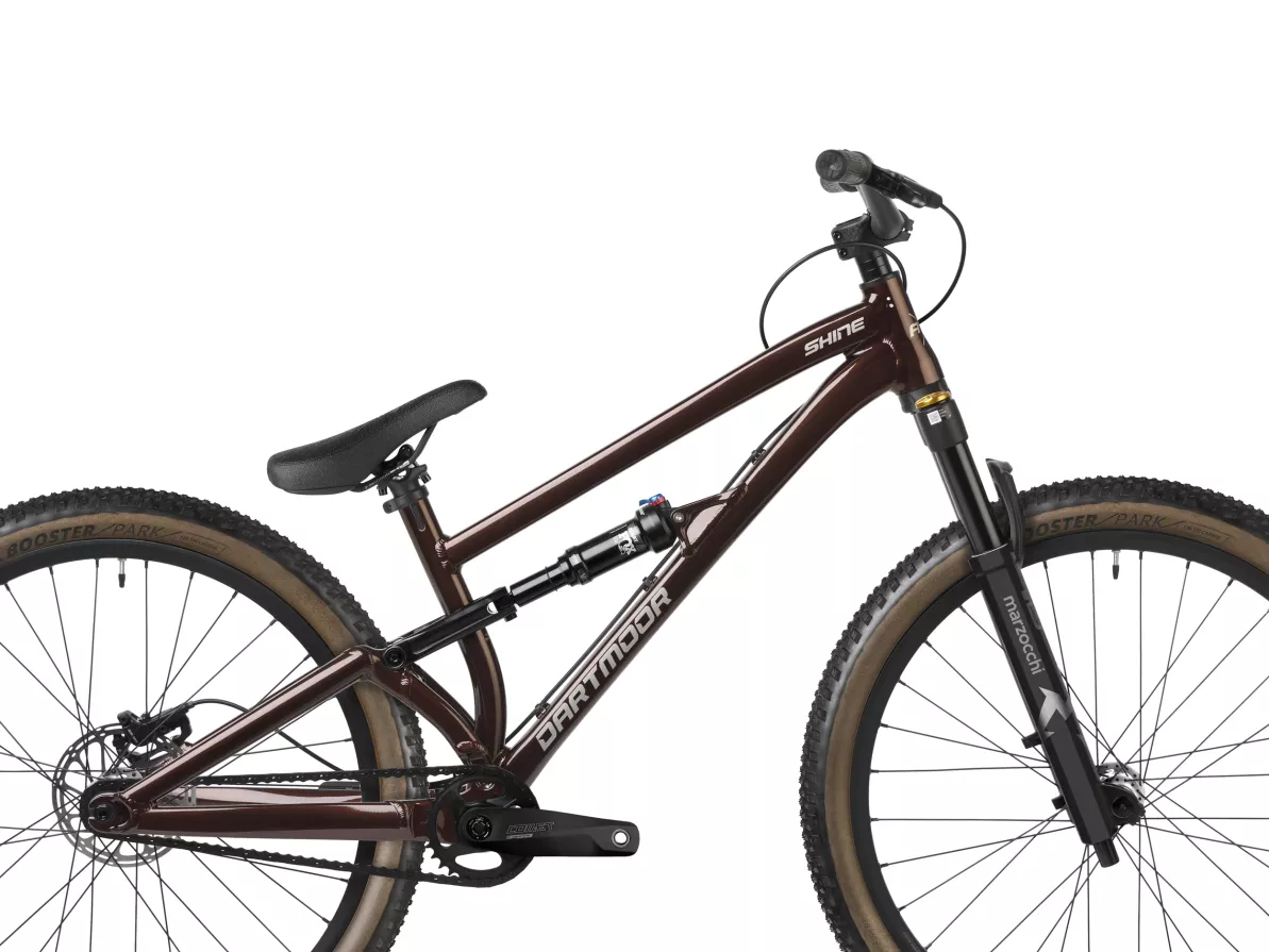 The Shine is the bike that first put Dartmoor on the global dirt jump map - and now it’s back, better than ever. The new generation features a frame built around a metric rear shock and finished in a deep Dark Chocolate colorway that looks as smooth as it rides. This is the finest full suspension dirt jump bike out there, blending the look and feel of the Two6Player with the smoothness of rear travel.