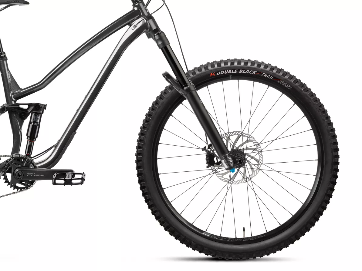 The wheel setup combines Raptor rims with folding Kenda Double Black K-Series tires featuring a 60 TPI casing, ensuring grip and durability in all conditions. A Manic LC dropper post from X-Fusion adds full trail versatility, letting you drop in or climb out at the touch of a lever.