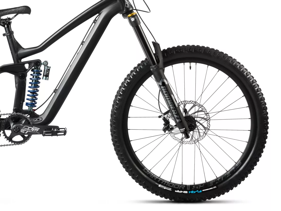 - 1.8" tapered head tube with 60mm bottom headset bearing to take safely huge drops and long gaps