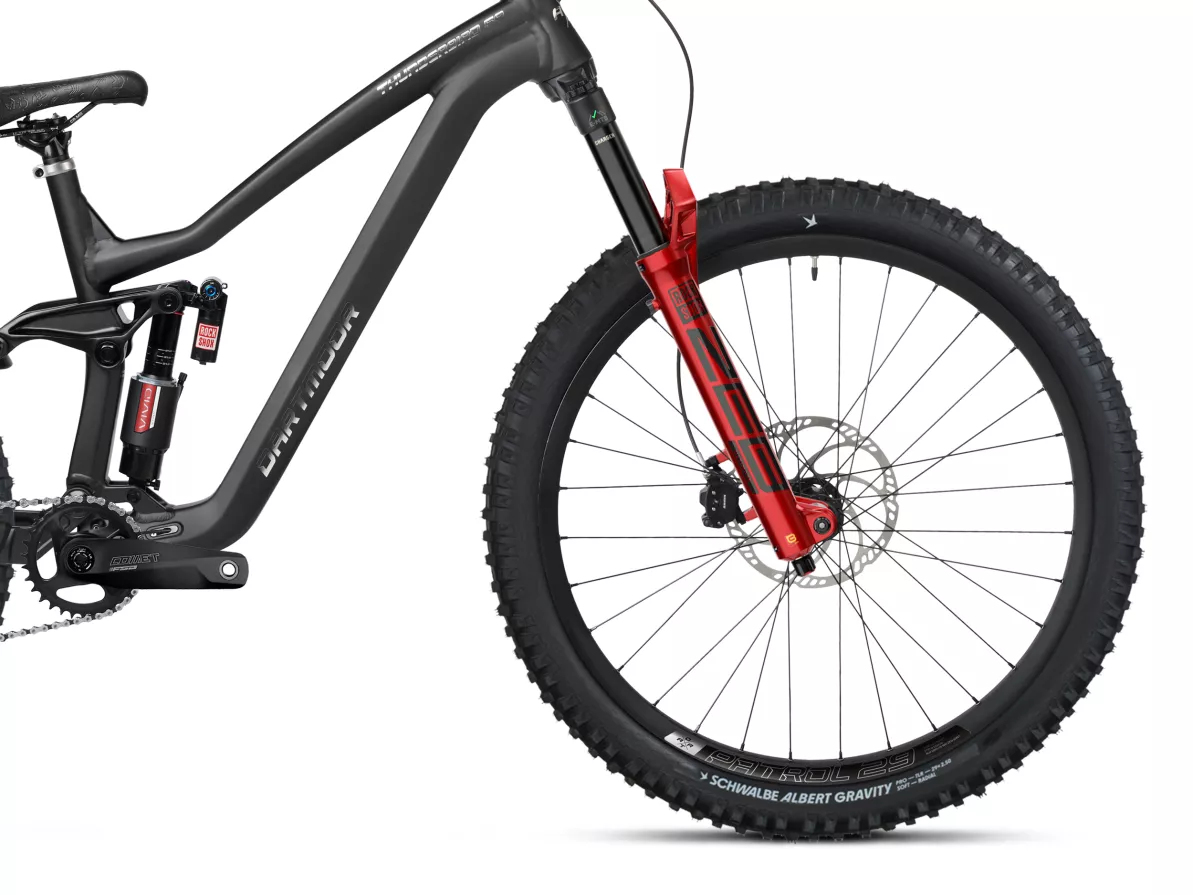 - Schwalbe Albert Gravity Pro tires with radial construction