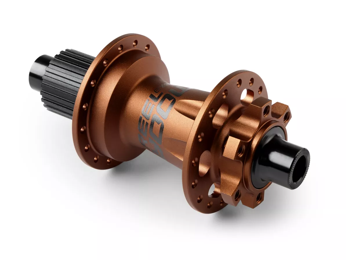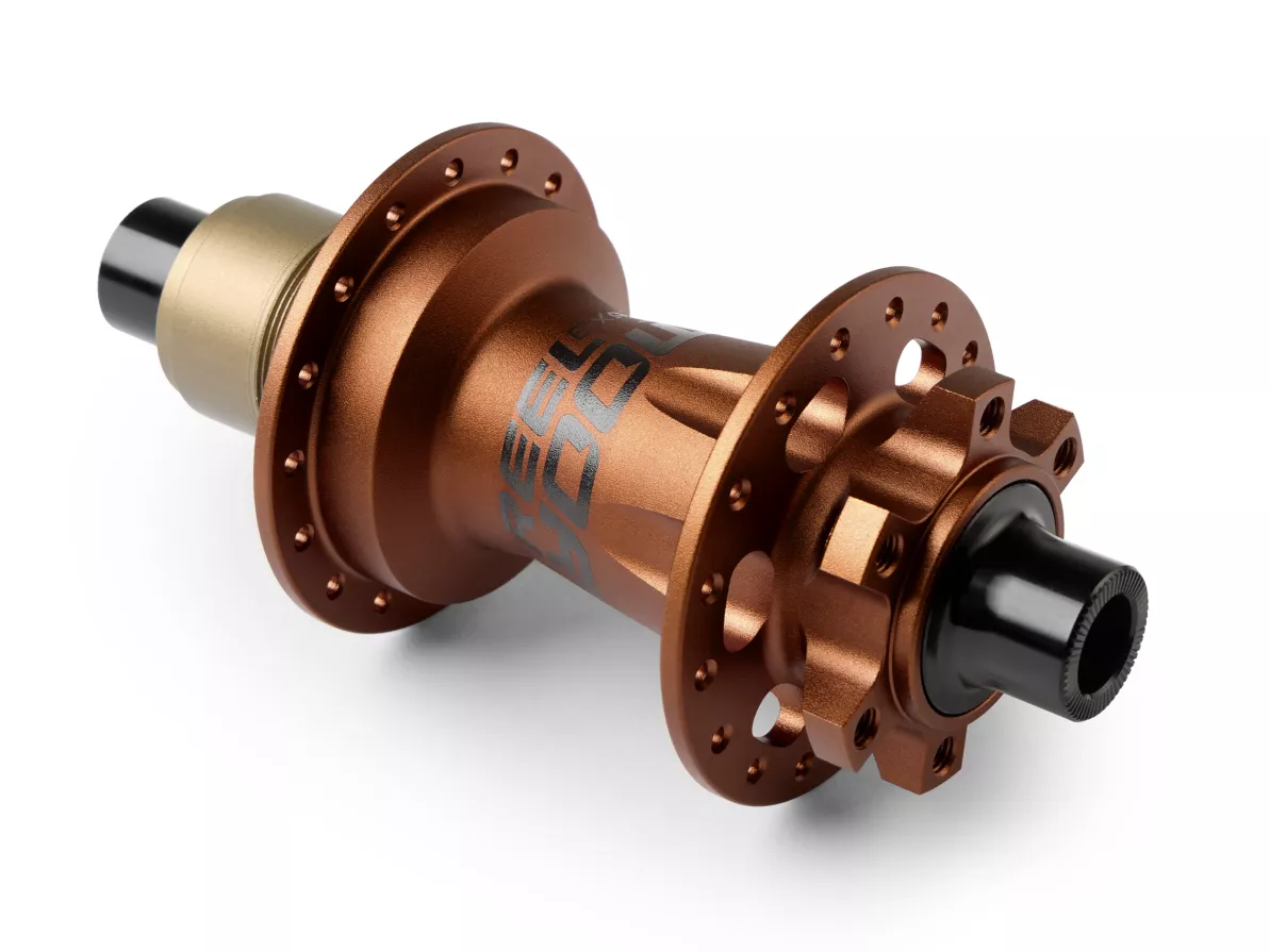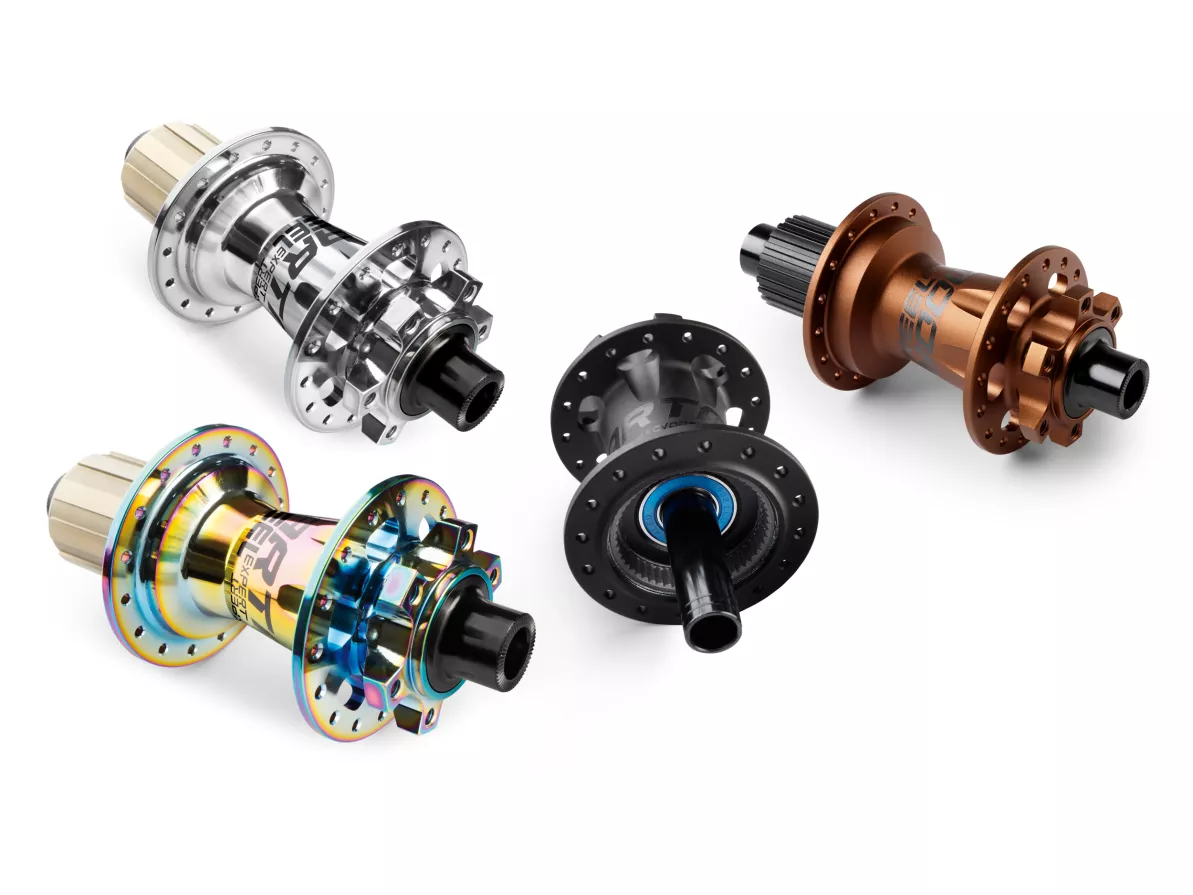 There are four versions of Reel Expert rear hubs, three of which are equipped with aluminum 7075 internal axles and freehubs compatible with Shimano HG (a common type of freehub), Shimano Microspline, or SRAM XD standards. The fourth version is dedicated to e-bikes and is equipped with a Cr-Mo steel internal axle and a Cr-Mo steel Shimano HG freehub to withstand the loads generated by the drivetrains of gravity e-bikes.
