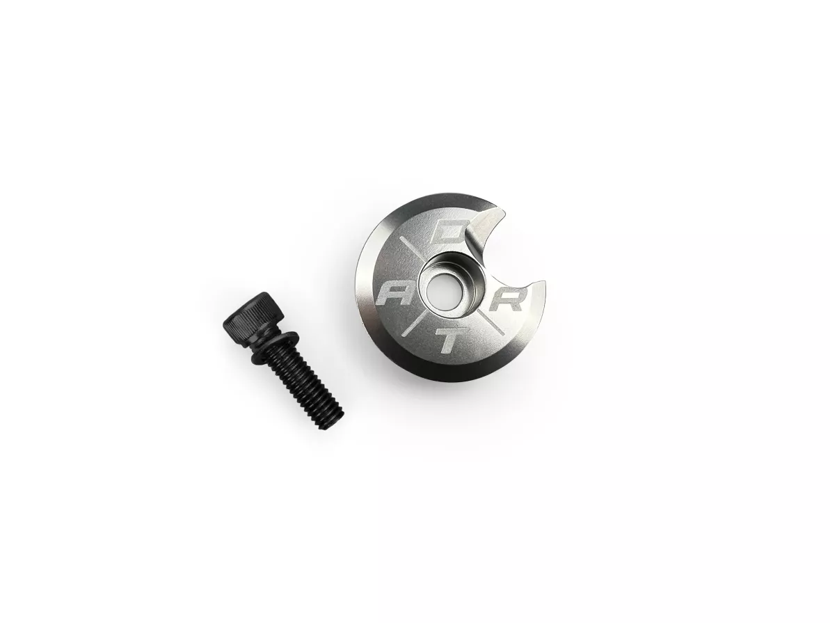 Try our top cap with a rounded, angled hole — designed for perfect front brake housing routing without damaging your line, no matter how many barspins you throw down.