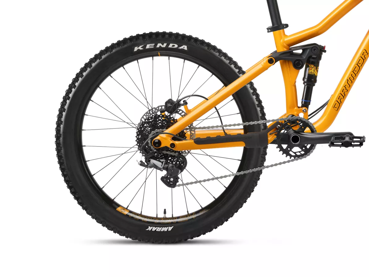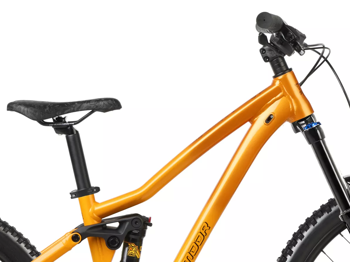 With 130mm of rear travel optimized with a kid-specific tune and a lightweight, air-sprung X-Fusion Velvet fork providing 140 mm of front travel, young riders enjoy smooth, controlled suspension over technical terrain. Hydraulic Tektro brakes provide the proper stopping power scaled for smaller hands.