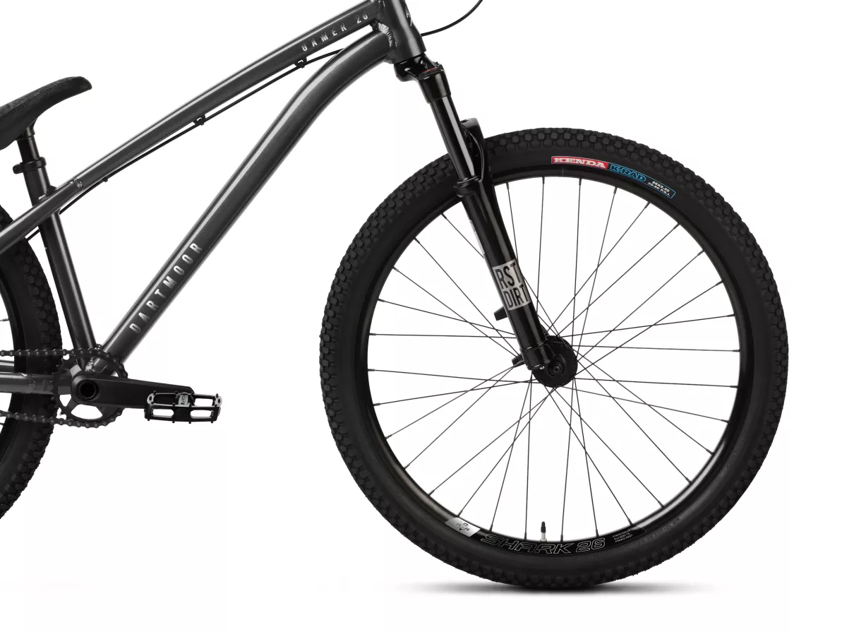 Durable Dartmoor Shark rims, Kenda K-Rad dirt/park tires, and a compact Dartmoor Viper stem with wide Tornado handlebar deliver precise control and solid handling, whether you’re learning to pump, manual, or hit your first jumps.