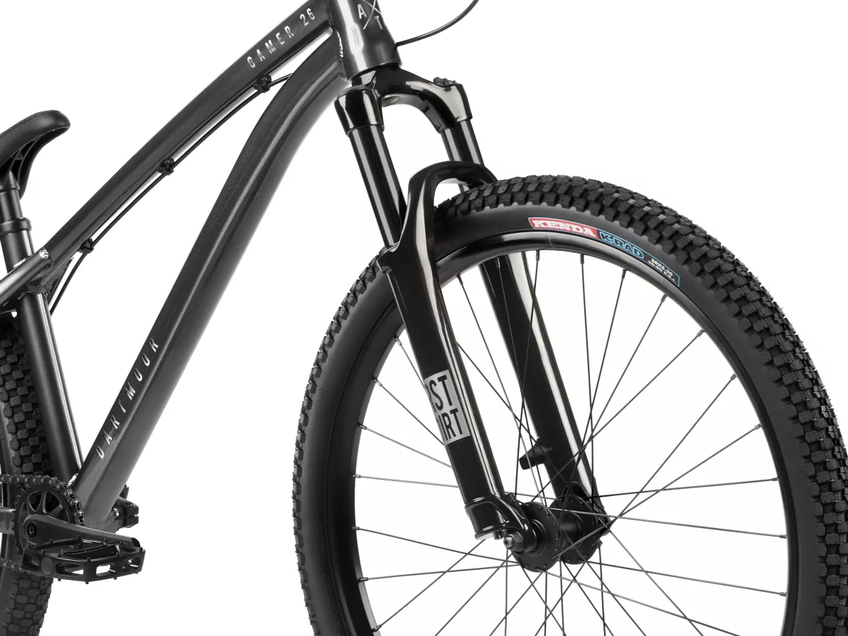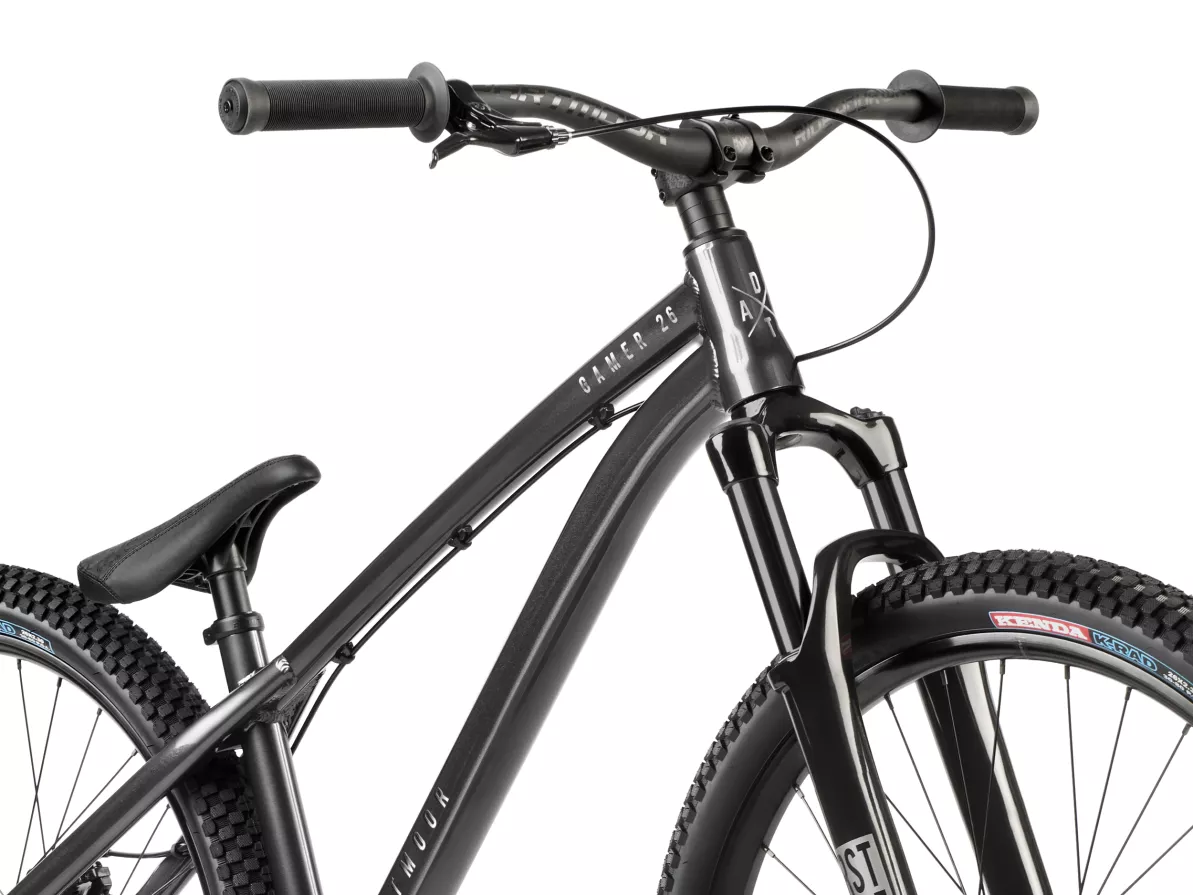 Built around the stiff and lightweight aluminum Gamer frame, it offers the same trusted geometry as its famous brother, the Two6Player, giving you the perfect base to start progressing. The RST Dirt RA fork with rebound adjustment and a firm spring keeps your front end stable on landings, while the new Samox 2-piece MTB crankset brings strength and smooth power transfer.