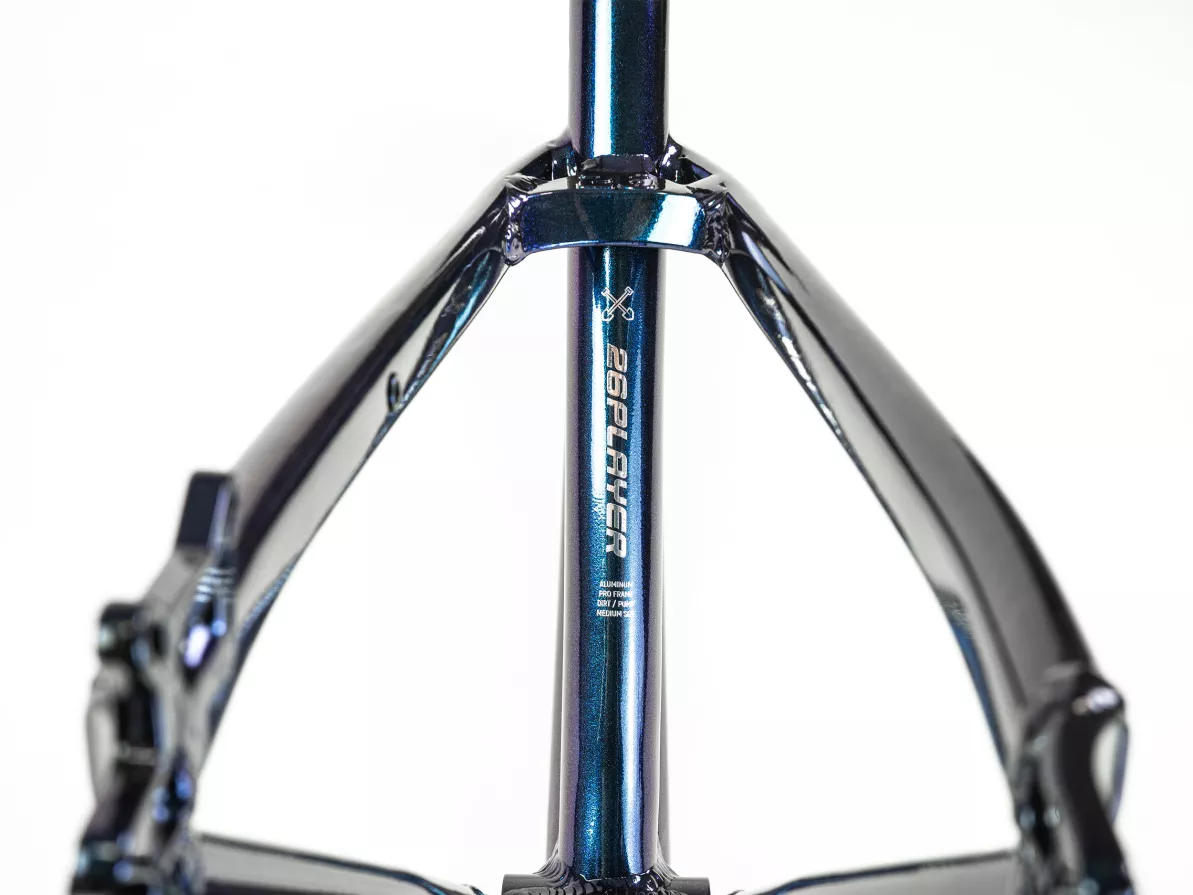 Two6Player Pro - one of the best-selling dirt jump frames on the planet - has been redesigned! We reshaped the top tube and seat stays for a cleaner silhouette and smoother fit, and tuned the sizing to better meet all rider needs. We’re bringing back the Short size, while the longest version now gets the Large size name.