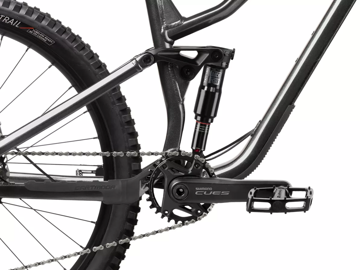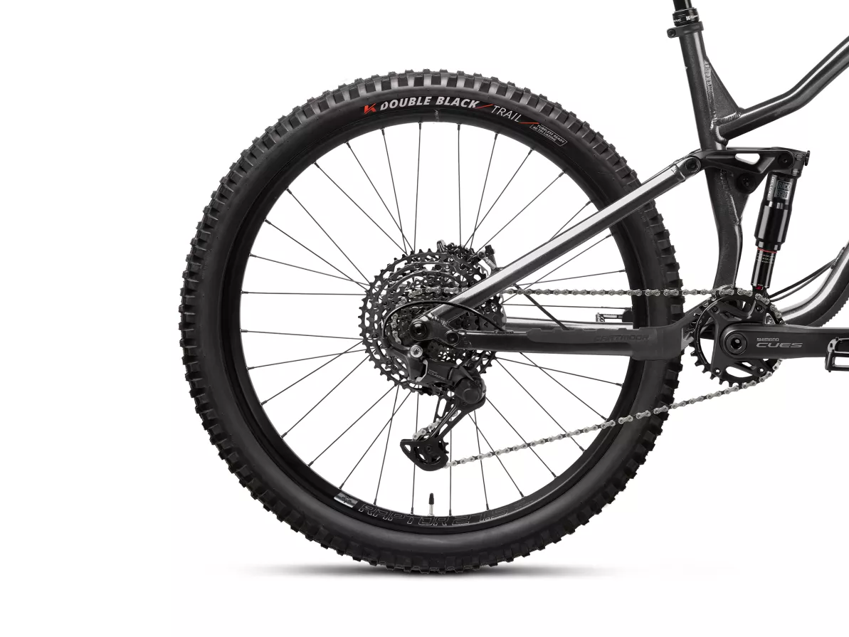 Up front, the Manitou Mezzer Expert fork with 160 mm of travel delivers stiffness and smooth, controlled damping, while the RockShox Deluxe Select shock keeps the rear end responsive and composed over rough terrain.