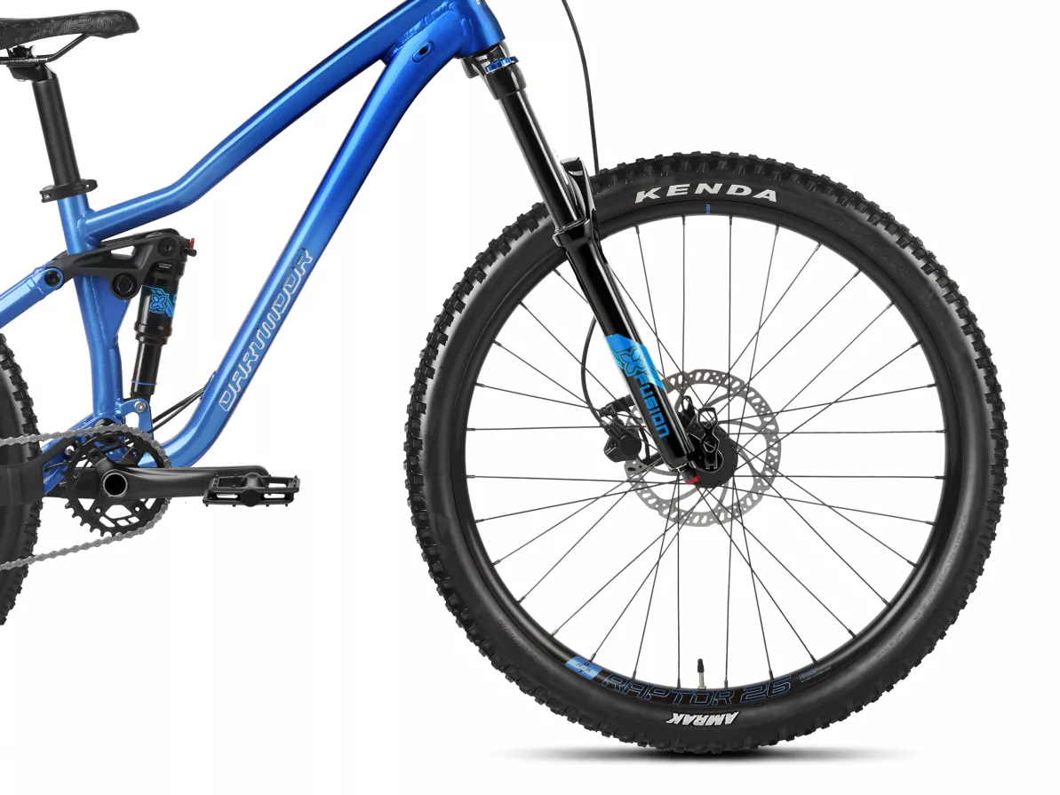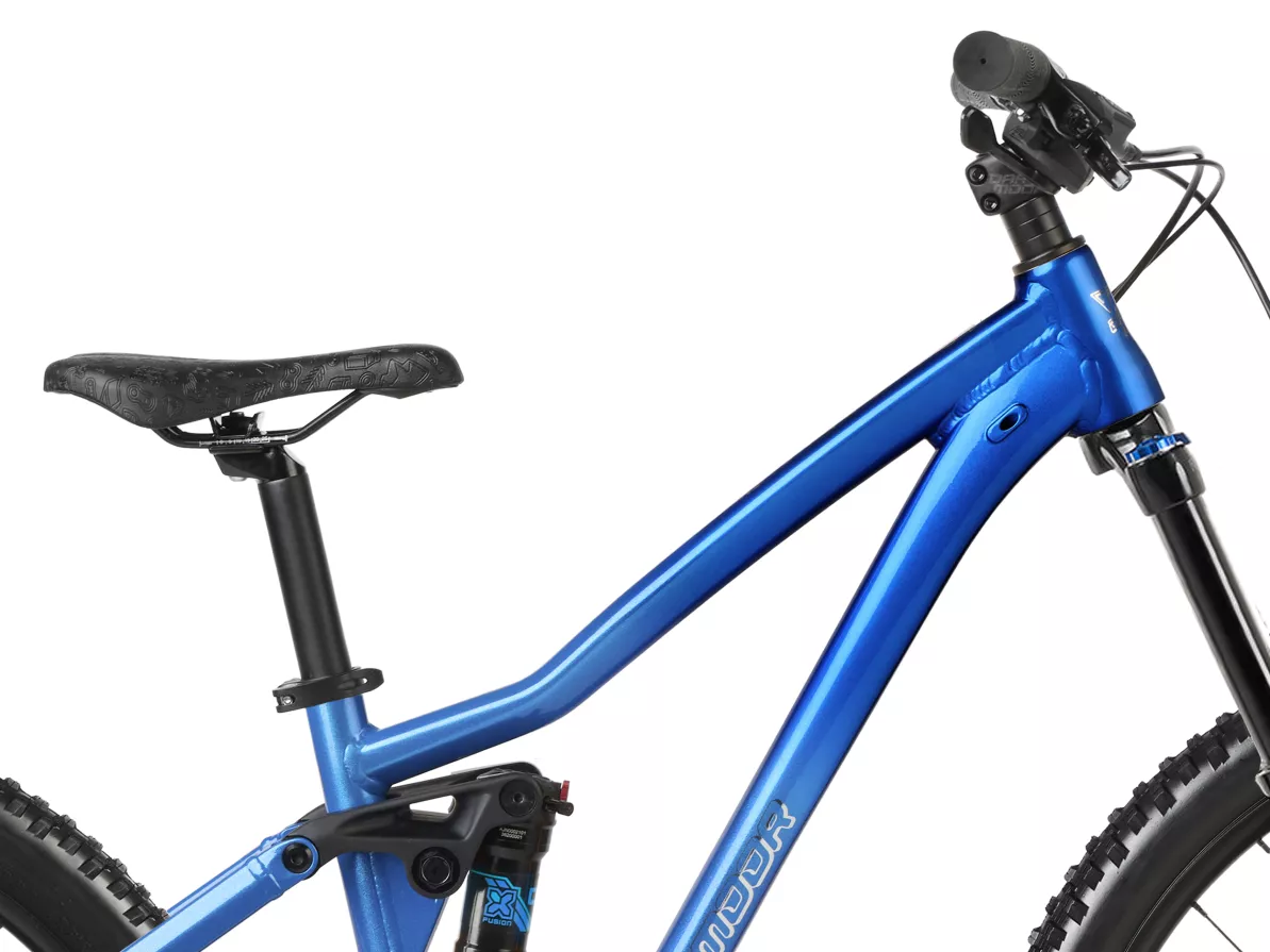 With 130mm of rear travel optimized with a kid-specific tune and a lightweight, air-sprung X-Fusion Velvet fork providing 140 mm of front travel, young riders enjoy smooth, controlled suspension over technical terrain. Hydraulic Tektro brakes provide the proper stopping power scaled for smaller hands.