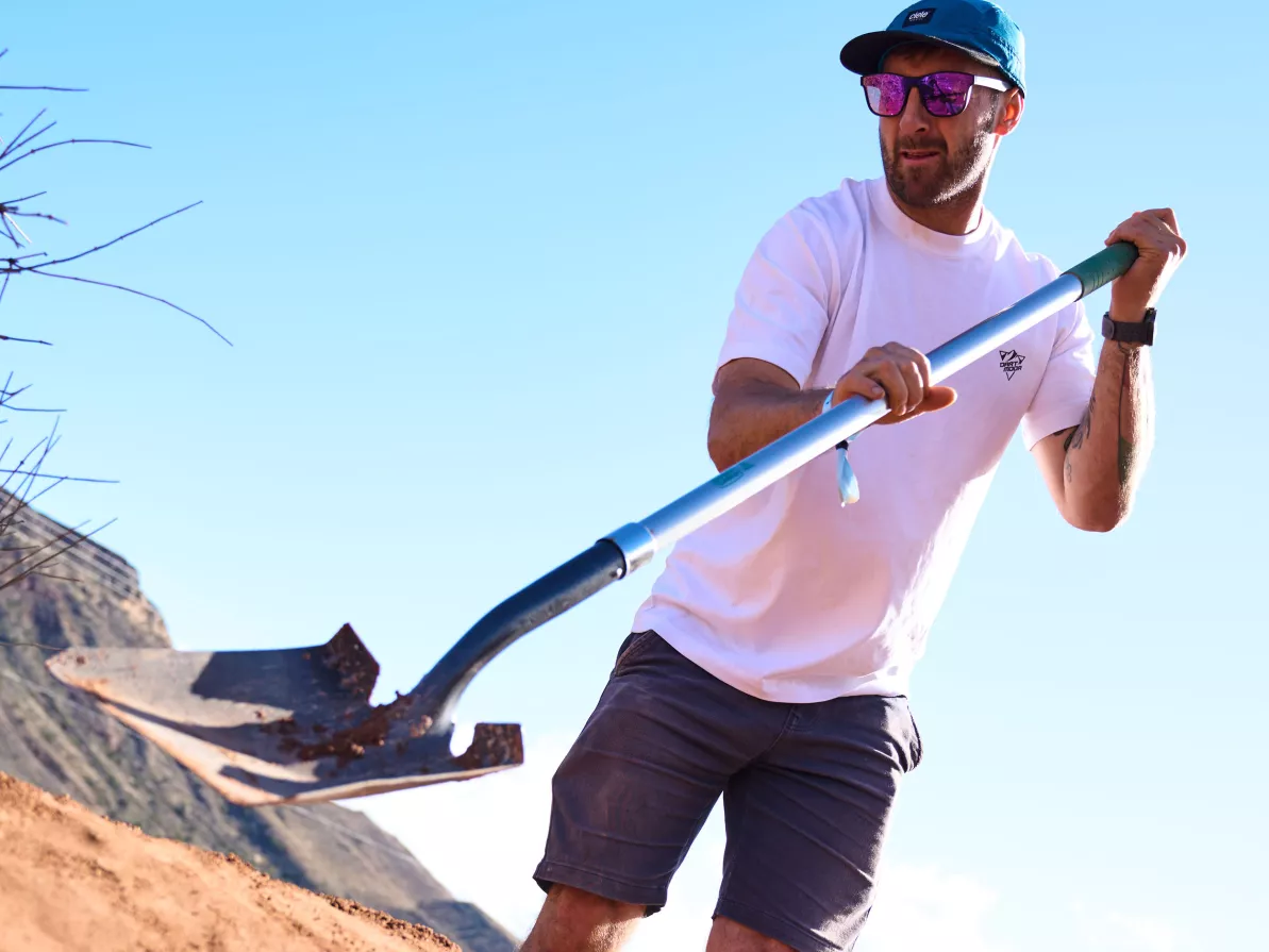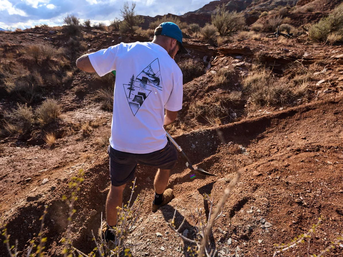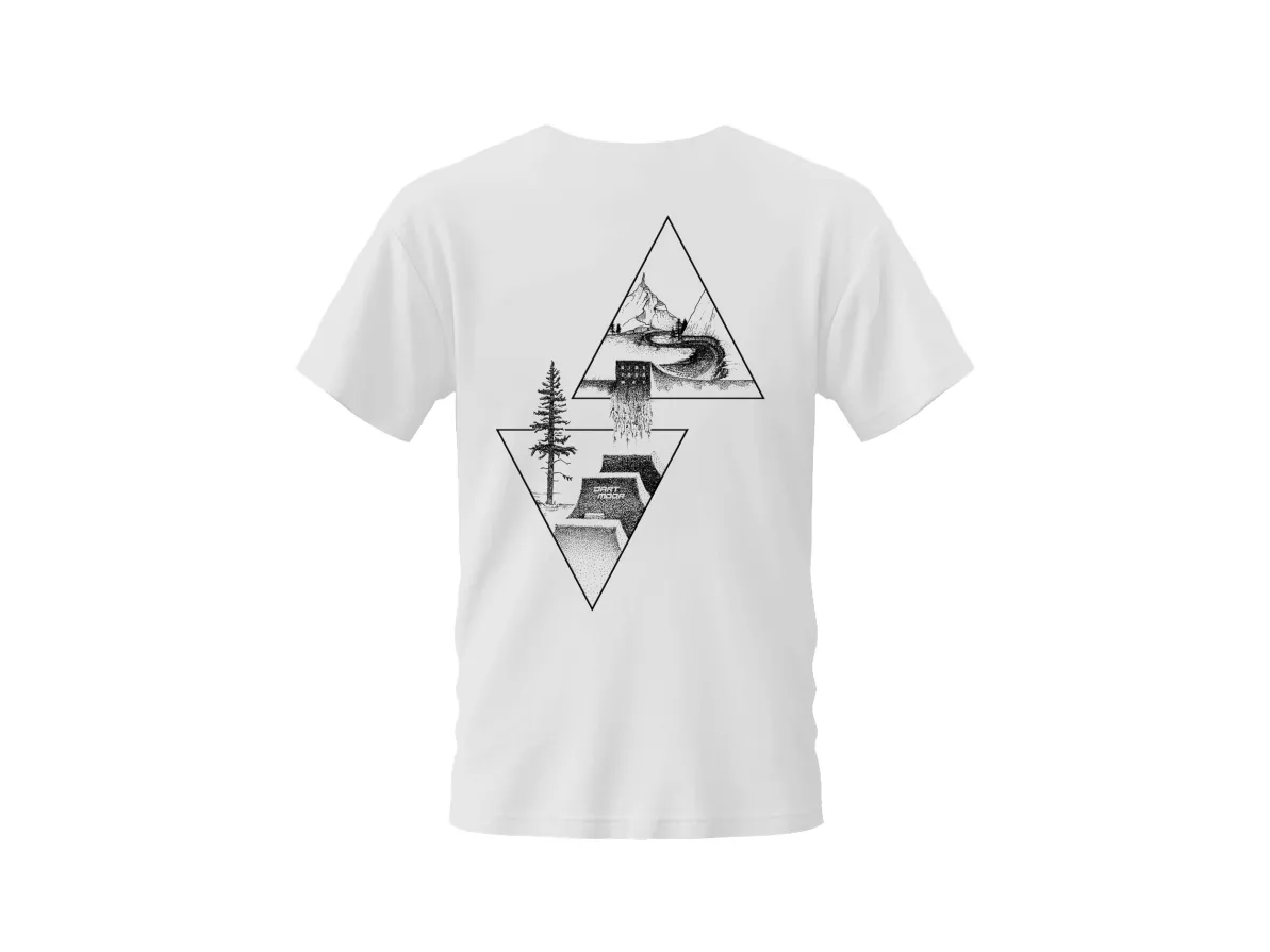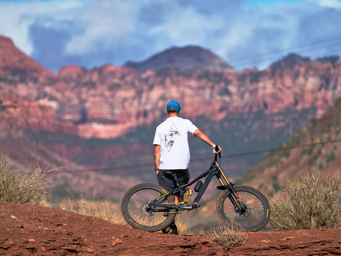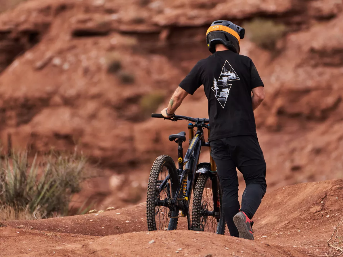 On the back, two massive triangles - the top one twists through the mountain trail, the bottom one is all about dirt jumps and airtime. Rock it, and watch people do a double-take.