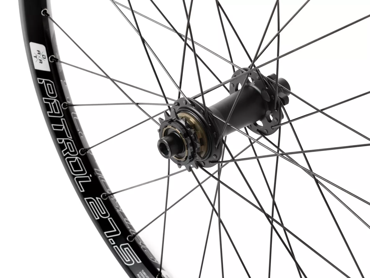 Now available pre-laced in a 27.5" wheel with the Patrol v.2 welded rim, it’s ready to ride straight out of the box. To maximize impact resistance and long-term durability, we use strong Sapim Leader spokes and Sapim nipples with the patented Secure Lock mechanism to prevent self-loosening.