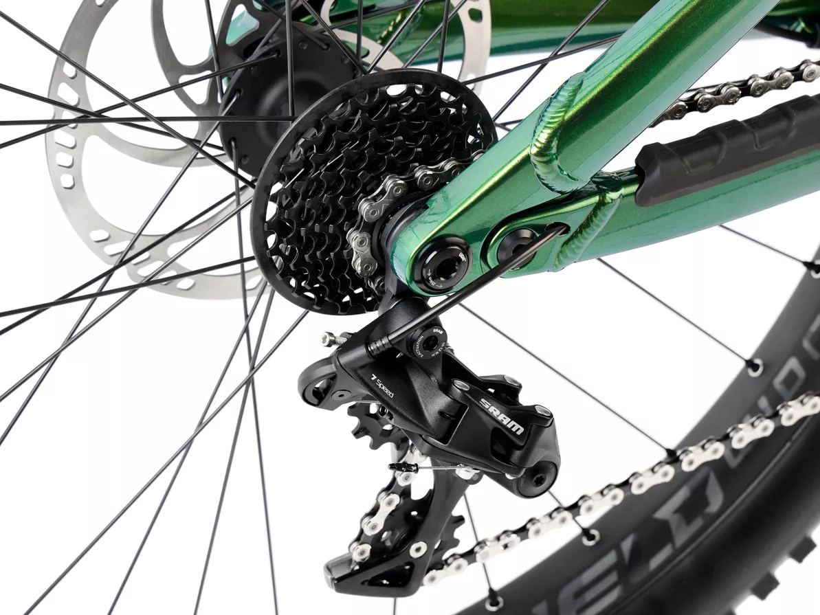 - SRAM GX DH 7-speed drivetrain with 11-25T cassette